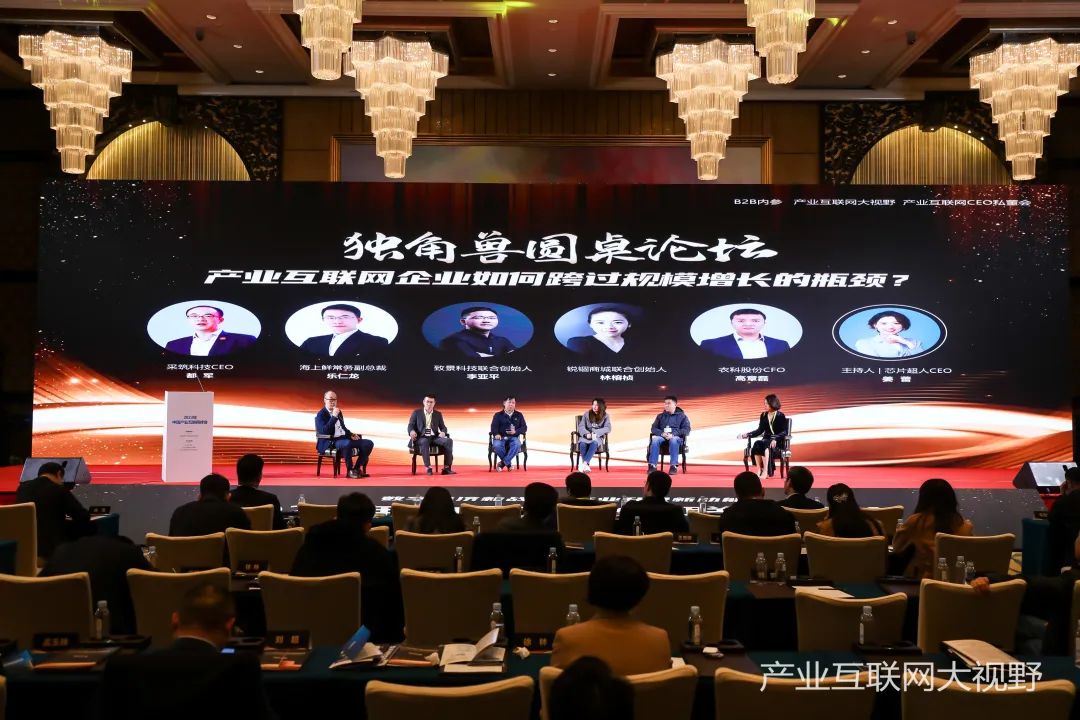 在独角兽圆桌论坛环节,海上鲜常务副总裁乐仁龙与在座企业家就“产业互联网企业如何跨过规模增长的瓶颈”一起深入探讨,分享了企业在发展过程中的经验与心得。