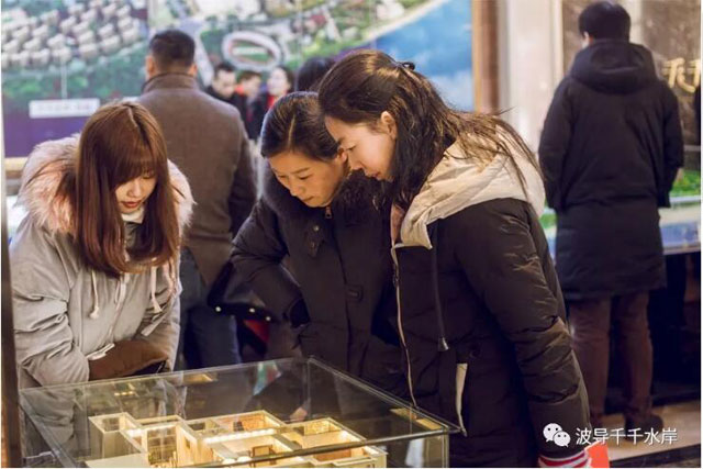 ? ? ? ? 当然,全新升级的千千水岸营销中心最为显眼的莫过于精致沙盘和户型模型。购房者或围在沙盘前“指点江山”,或在立体户型模型前仔细斟酌……