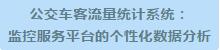 率先突破传统公交客流检测技术的诸多劣势,系统具有双向计数功能,适应同一车门上下车的复杂工况,能适应车辆启停情况,自动匹配站点,实现对每个站点、每条线路的客流量统计,为公交线路优化、公交客流的实时动态分析与预测、公交调度的决策和调控提供数据支撑。服务于终端的监控服务平台,对公交车辆进行实时监控和管理,并提供智能调度和运力分析,为公交线网优化、运力调配、智能决策、安全实施等提供支持,为促进公共交通设施建设和运营,大力发展智能绿色环保的公共交通贡献力量。