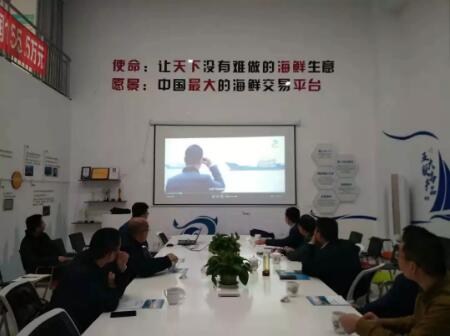 首先,各位领导在海上鲜会议大厅观看了最新的海上鲜企业宣传片。