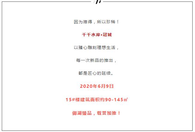 千千水岸·冠城|万达之上 典藏高层15#楼载誉加推