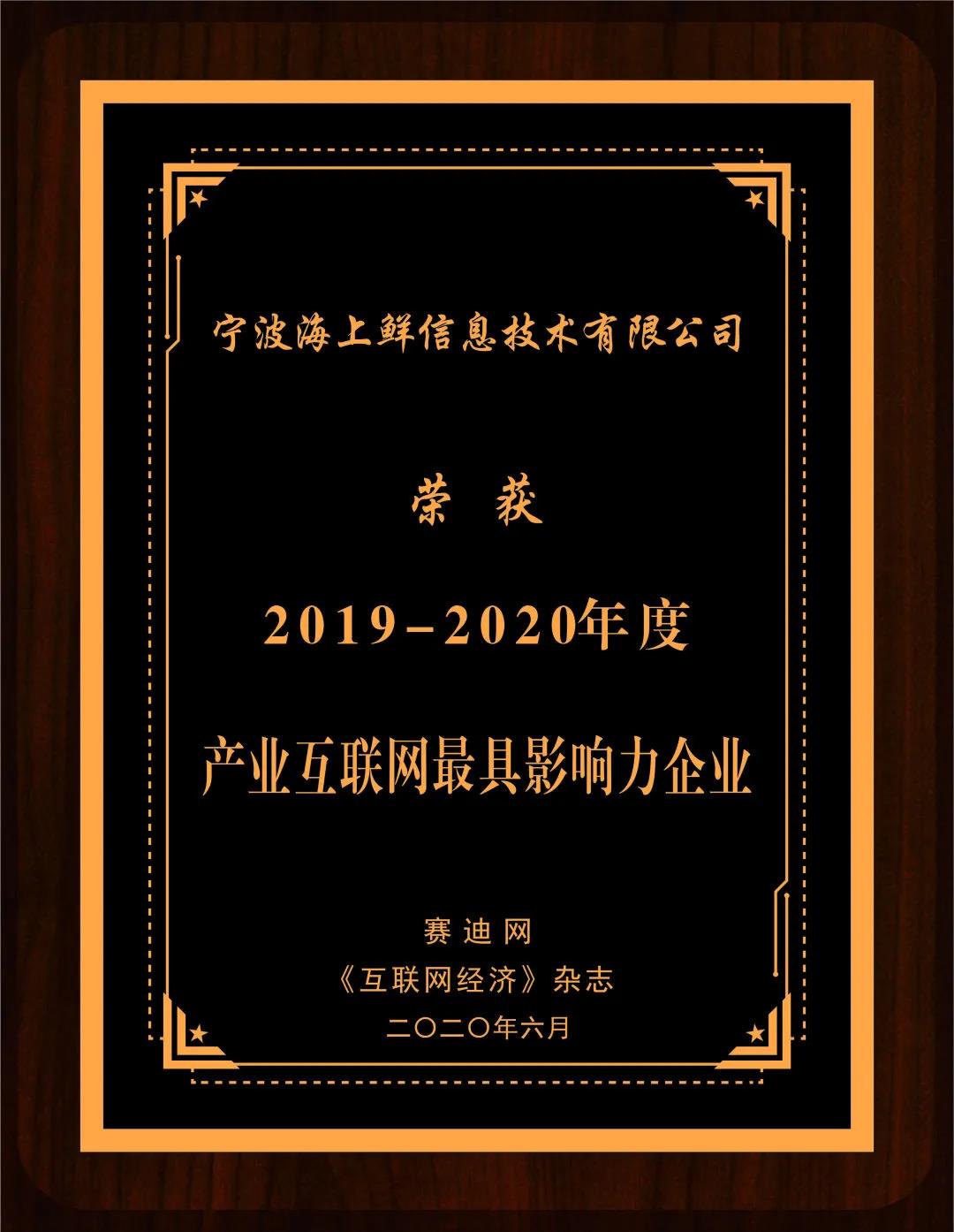 喜报!海上鲜荣获2019-2020年度产业互联网最具影响力企业!