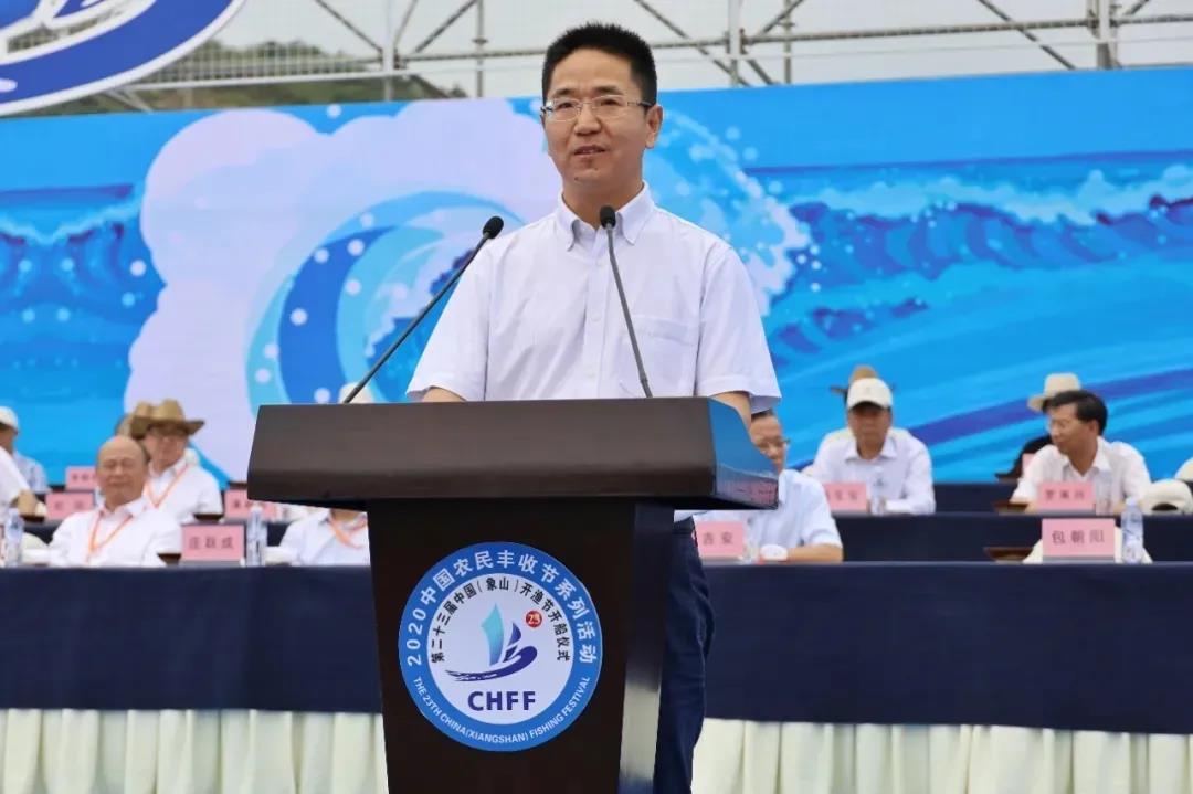 农业农村部渔业渔政管理局副局长江开勇、浙江省宁波市副市长卞吉安出席活动并讲话,浙江省副省长彭佳学、宁波市政协主席徐宇宁等领导出席开渔节开船仪式。
