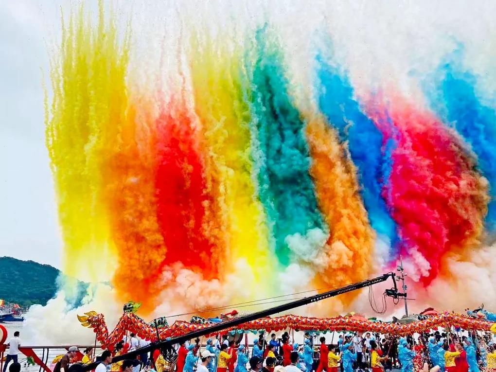 现场,渔家汉子唱着豪迈的渔歌号子,合力拉纤绳扬起了“一帆风顺”的船帆。网络上,上万名游客也扬起了“庆丰收 ?迎小康”的风帆,共同感受着这气势磅礴的开船仪式。