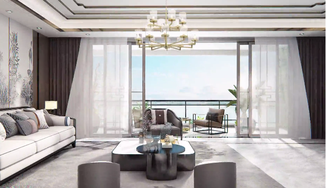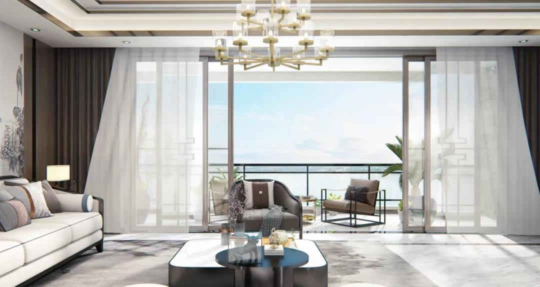 ▲ 320㎡瞰湖大平墅客厅阳台设计效果图