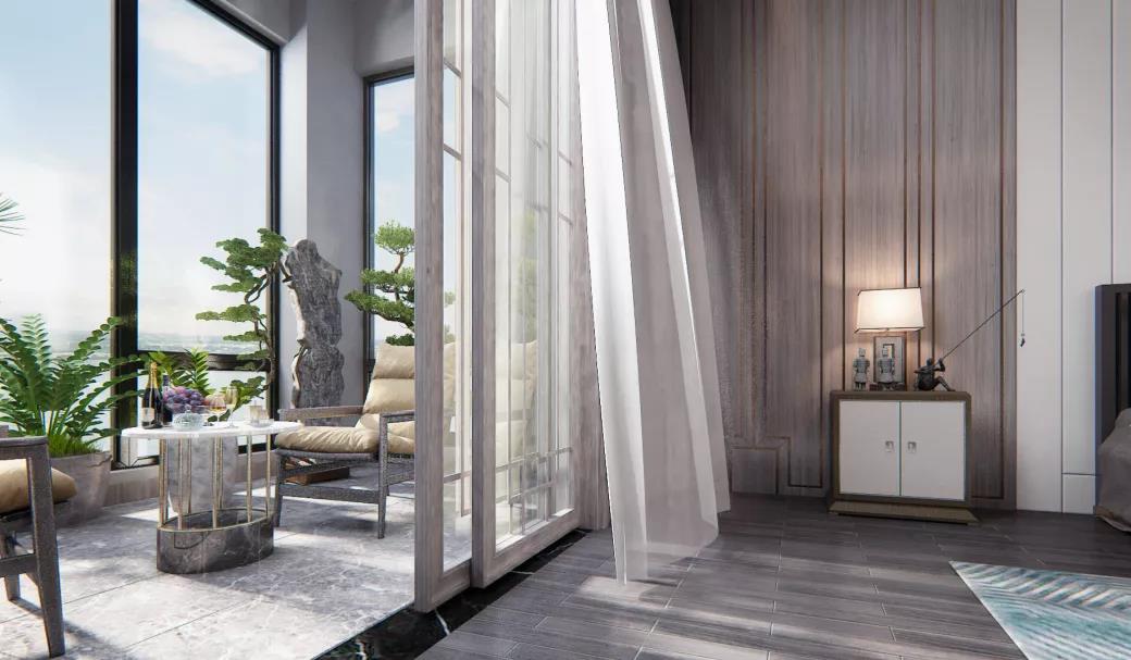 ▲ 320㎡瞰湖大平墅卧室阳台设计效果图