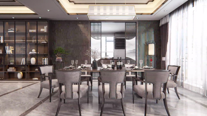▲ 320㎡瞰湖大平墅餐厅设计效果图