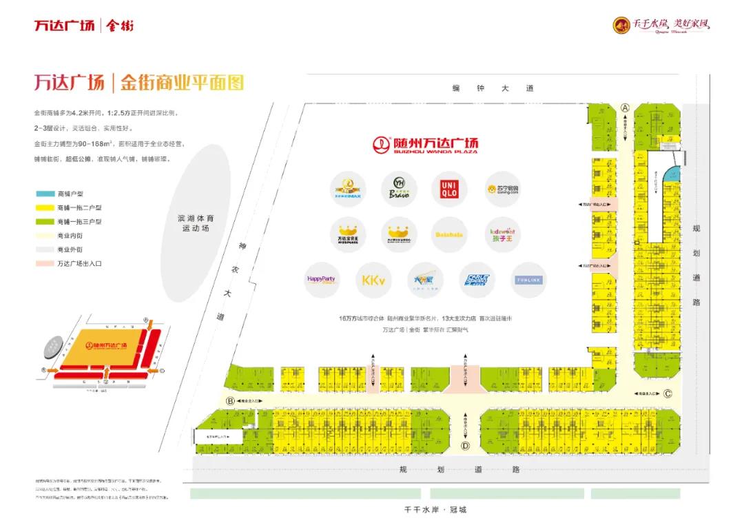 ? ? ? ?万达广场|金街背靠随州万达大商业,六大出入口共享商圈人流;坐拥千千水岸自身90万方超大社区人流;周边世纪外滩、锦绣大地、碧桂园、云海天地等众多成熟小区环绕;政务、教育、医疗、商企云集;数十万计的常住人口,以及往来频繁的流动客流集聚庞大的消费群体,成就万千财富机遇。