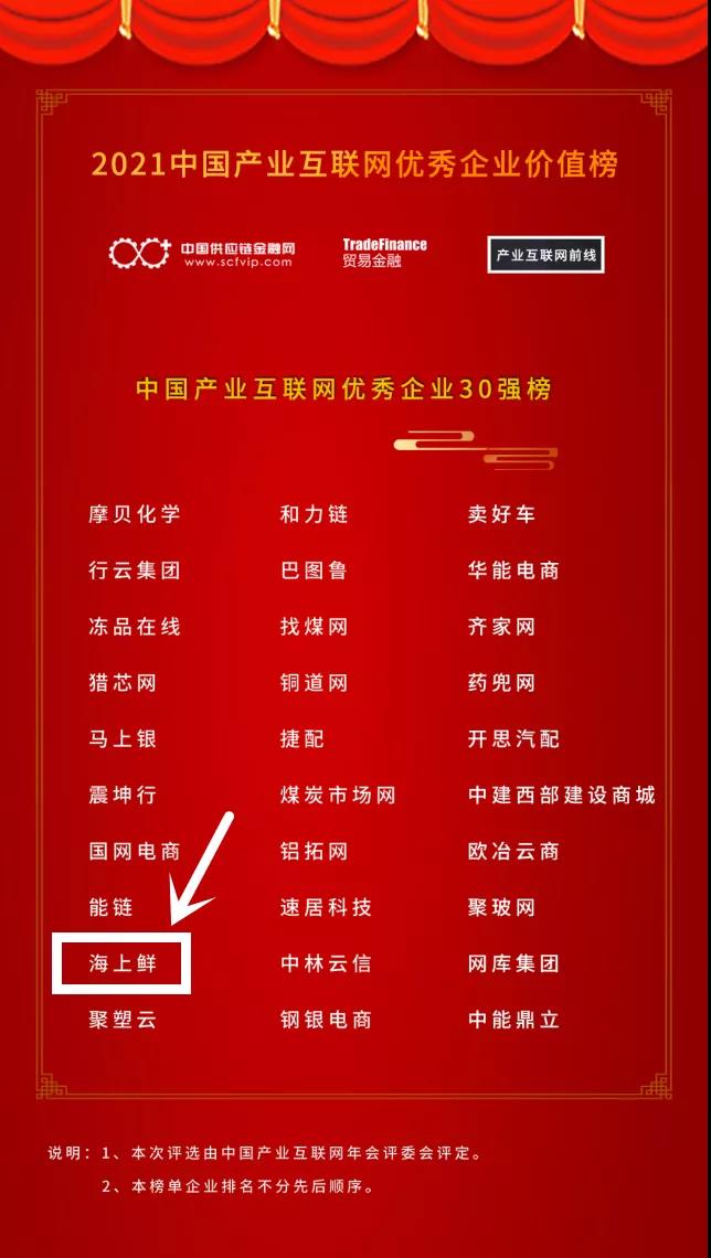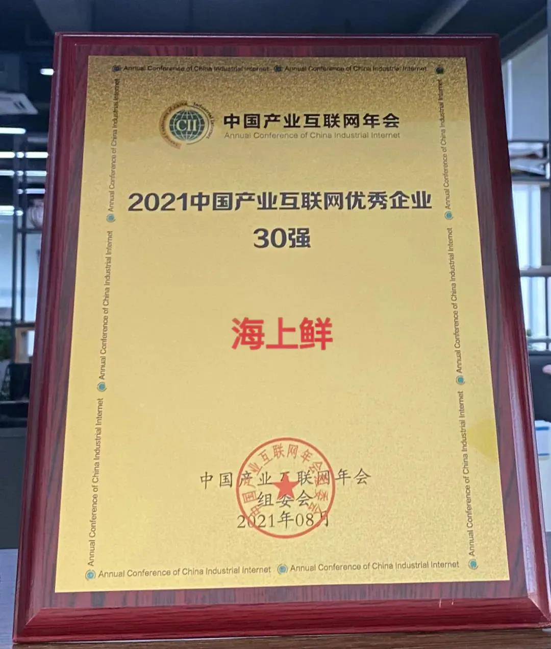 喜报!海上鲜荣获“2021中国产业互联网优秀企业30强”!