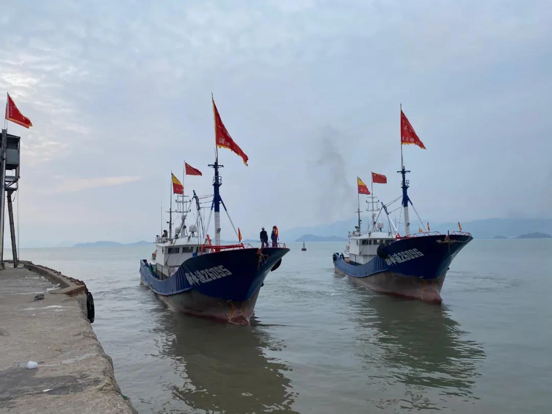 浙奉渔26095和浙奉渔26096号双拖渔船陈民老大开渔前照片。