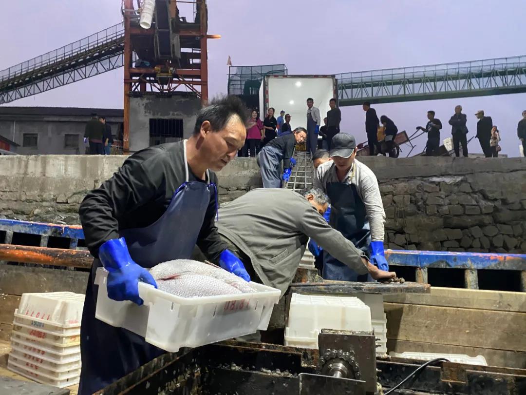 “这个季节正是米鱼上市的时候,平时三三两两都会抓到,比如百来箱,但是像这样一网大概有一千五六百箱,平均规格在10斤以上的,我觉得近几年是没见过的,算是一次大丰收了。”渔民林武森说。