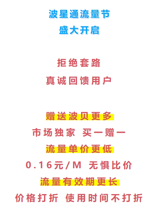 速转 | 王炸!波星通充值活动今日开启!套餐翻倍送!低至0.16元/M!错过再等一年!