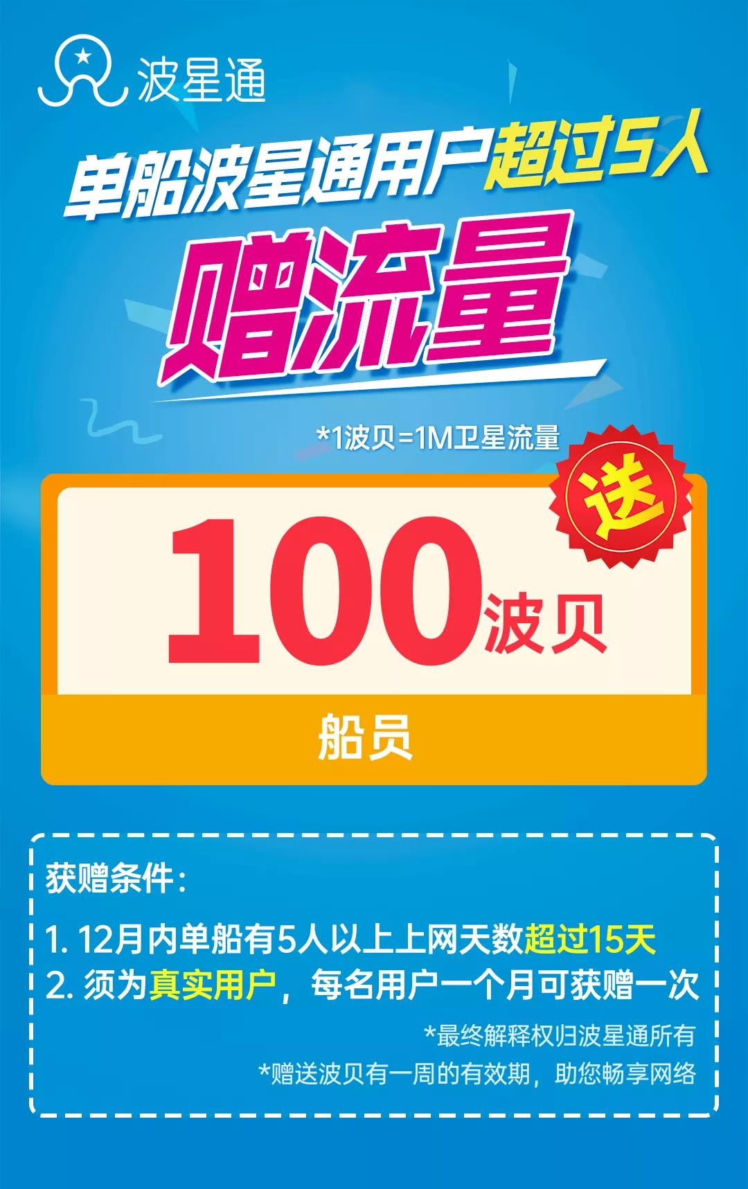 船老大奖励500波贝,使用流量15天以上的船员奖励100波贝