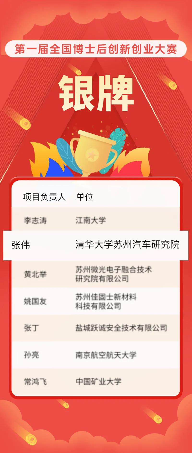喜报 | 清研微视董事长张伟荣获第一届全国博士后创新创业大赛银牌