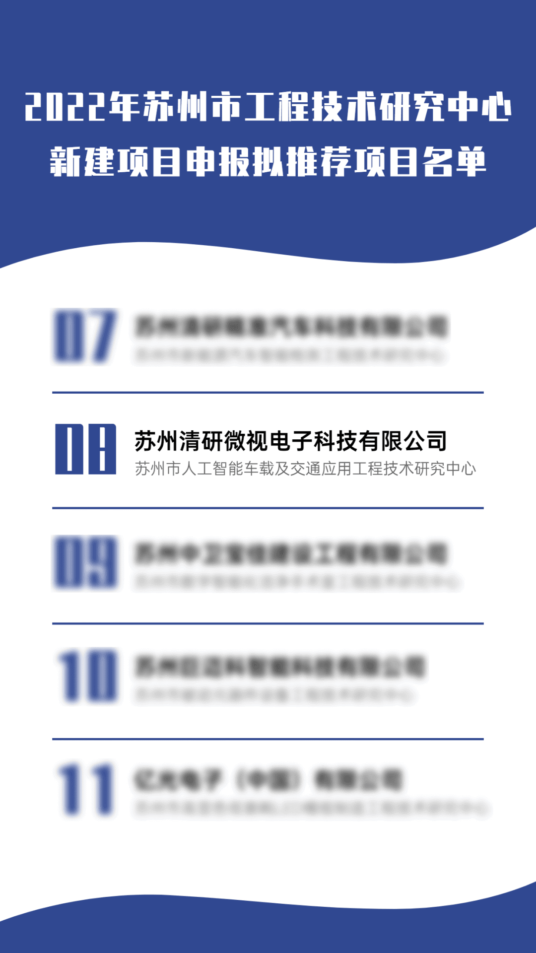 2022年苏州市工程技术研究中心新建项目名单于近日公布,经自主申报、主管部门初审、专家评审等程序,清研微视获评新建“苏州市人工智能车载及交通应用工程技术研究中心”。